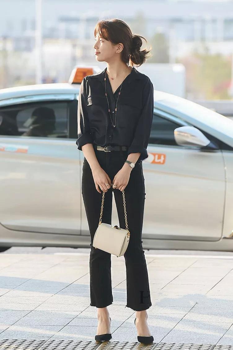 纯黑衬衫显瘦遮肉,一身all black,优雅又简约,炒鸡显气质。Annie提醒泥萌,一定要添点亮色点缀,比如浅色的包包或者项链,不然容易显得呆板沉闷噢~