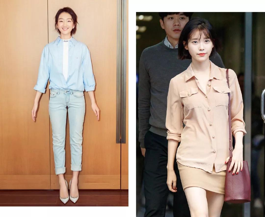 IU小姐姐的裸粉色衬衫,炒鸡温柔素雅,搭配酒红色包包,知性又优雅。